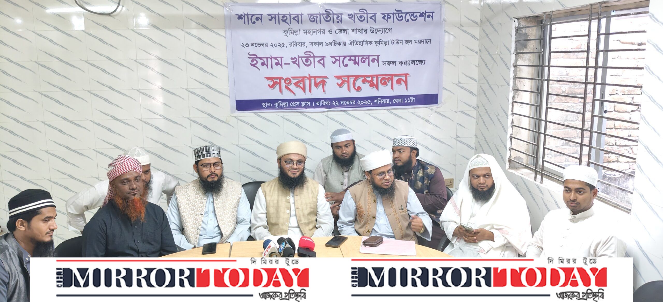 শানে সাহাবা জাতীয় খতীব ফাউন্ডেশন, কুমিল্লা জেলা ও মহানগরের উদ্যোগে আগামীকাল রোববার (২৩ নভেম্বর) কুমিল্লা টাউন হল ময়দানে অনুষ্ঠিত হতে যাচ্ছে জেলা–মহানগর ইমাম–খতীব সম্মেলন।