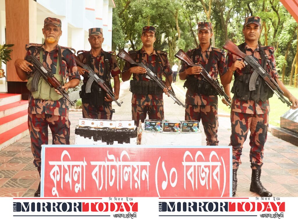 কুমিল্লার আদর্শ সদর উপজেলার রসুলপুর রেলওয়ে ষ্টেশনে বিশেষ টাস্কফোর্স অভিযানে ১ কোটি ৩৭ লাখ ১০ হাজার টাকা মূল্যের বিপুল পরিমাণ অবৈধ ভারতীয় বাজি জব্দ করেছে কুমিল্লা ব্যাটালিয়ন (১০ বিজিবি)। বুধবার (১ অক্টোবর) দুপুরে এ তথ্য নিশ্চিত করেন কুমিল্লা ব্যাটালিয়ন (১০ বিজিবি)-এর মিডিয়া এনসিও মো. মুকুল মিয়া। বিজিবি সূত্রে জানা যায়, নিয়মিত চোরাচালানবিরোধী কার্যক্রমের অংশ হিসেবে […]